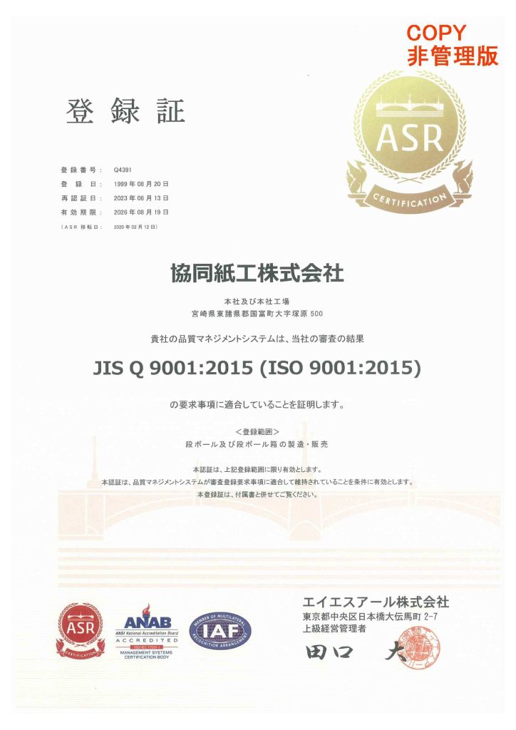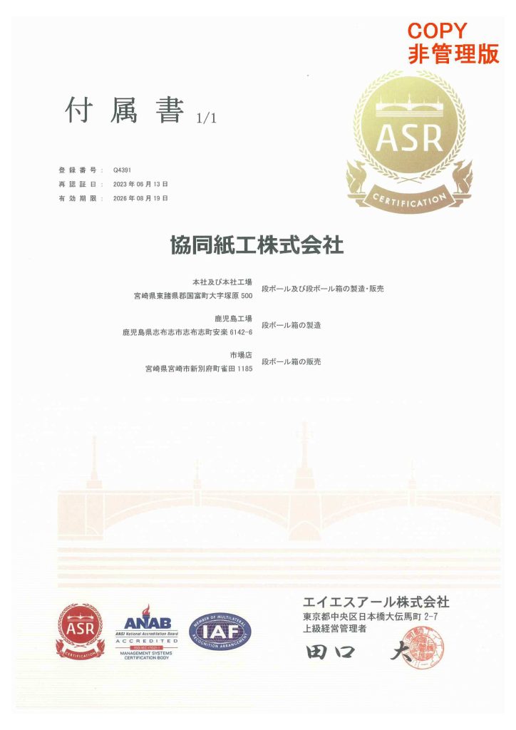 社名協同紙工株式会社(王子グループ)